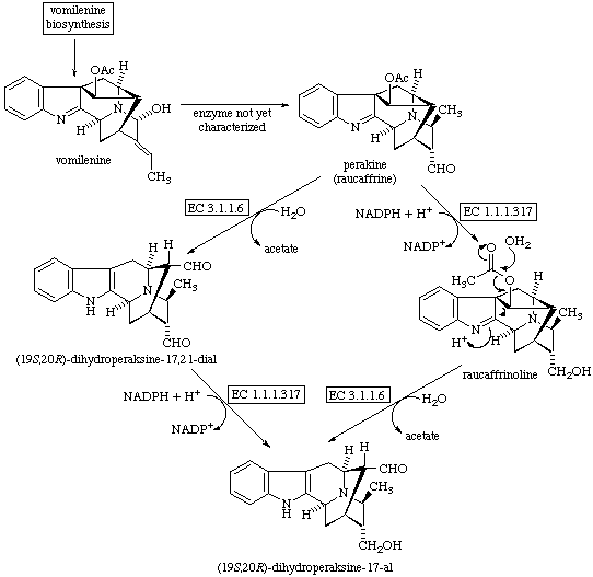 When cursor points to a box further details will be displayed in a tooltip window. If you click on the box you will change to appropriate reaction scheme or enzyme specification.